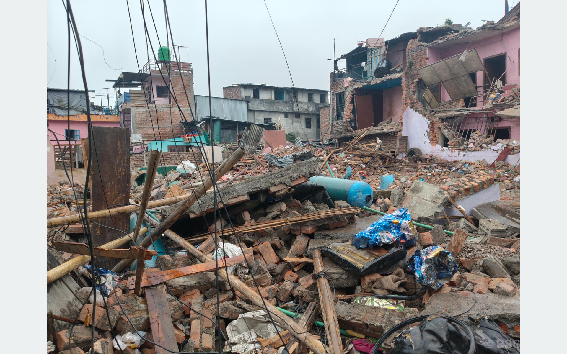 सरकारको निर्देशनअनुसार संरचना हटाउन नेपाल प्रहरी, सशस्त्र प्रहरी बल तथा काठमाडौँ महानगर प्रहरीको संयुक्त टोलीले शनिबार दिनभरि प्रभावित बासिन्दा र सरसामान सुरक्षित रूपमा सार्न सहयोग गरेको थियो । त्यसपछि मात्र डोजर प्रयोग गरी संरचना हटाउने काम गरिएको थियो ।