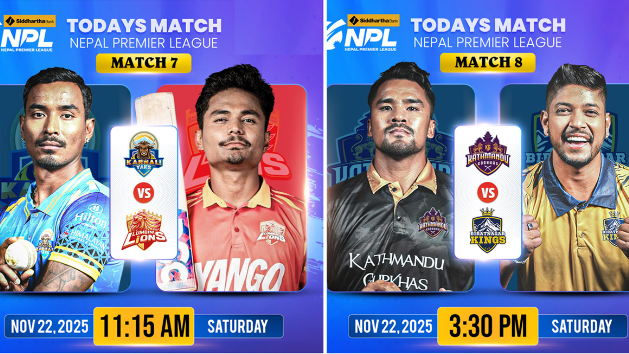 गत संस्करणको खेलमा कर्णालीले लुम्बिनीमाथि ५ रनको जित निकालेको थियो । यस्तै आजको दोस्रो खेलमा काठमान्डु गोर्खाज र विराटनगर किङ्स खेल्ने छन् । खेल अपरान्ह साढे तीन बजेदेखि सुरु हुनेछ ।