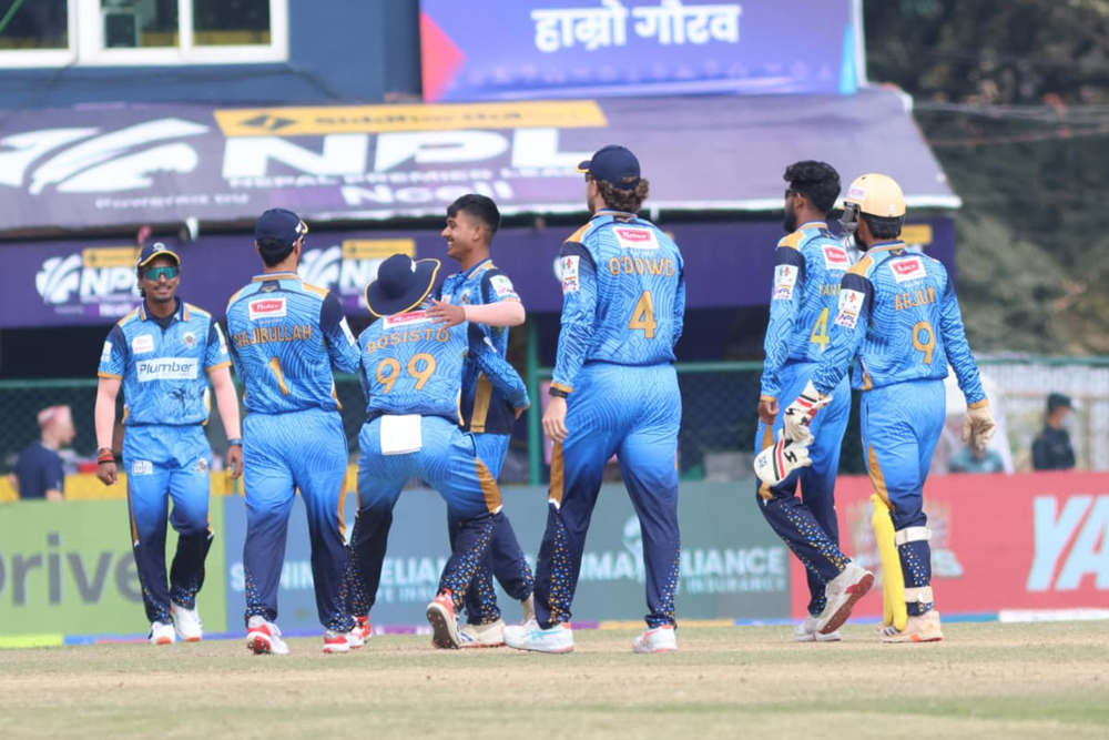 त्यस्तै, १३ बलमा दुई चौका र एक छक्काको सहयोगमा २३ रन बनाएका जोनाथन स्मिथ नन्दन यावदको बलमा क्याच आउट भए। रुवेन ट्रम्पलम्यान २९ र शेर मल्ल सात रनमा अविजित रहे। रुवेनले १४ बलमा एक चौका र तीन छकका प्रहार गरे। ओपनर डार्सी सर्ट १४ बलमा चार चौका सहयोगमा १९ रन बनाउँदा गुल्सन झाको बलमा प्रियांक पञ्चलको हातबाट क्याच आउट भए।
